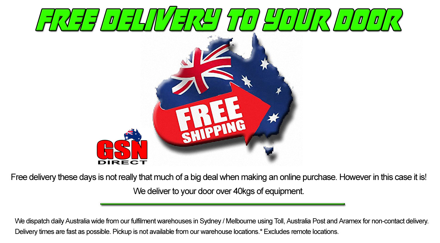 We dispatch daily Australia-wide from our fulfillment warehouses in Sydney / Melbourne using Australia Post, Toll, and Aramex for non-contact delivery. We can’t quote delivery times, as not within our control. Though you will have your tracking number/s the next business day after placing your order. Warehouse pickup is not available due to safety policies.