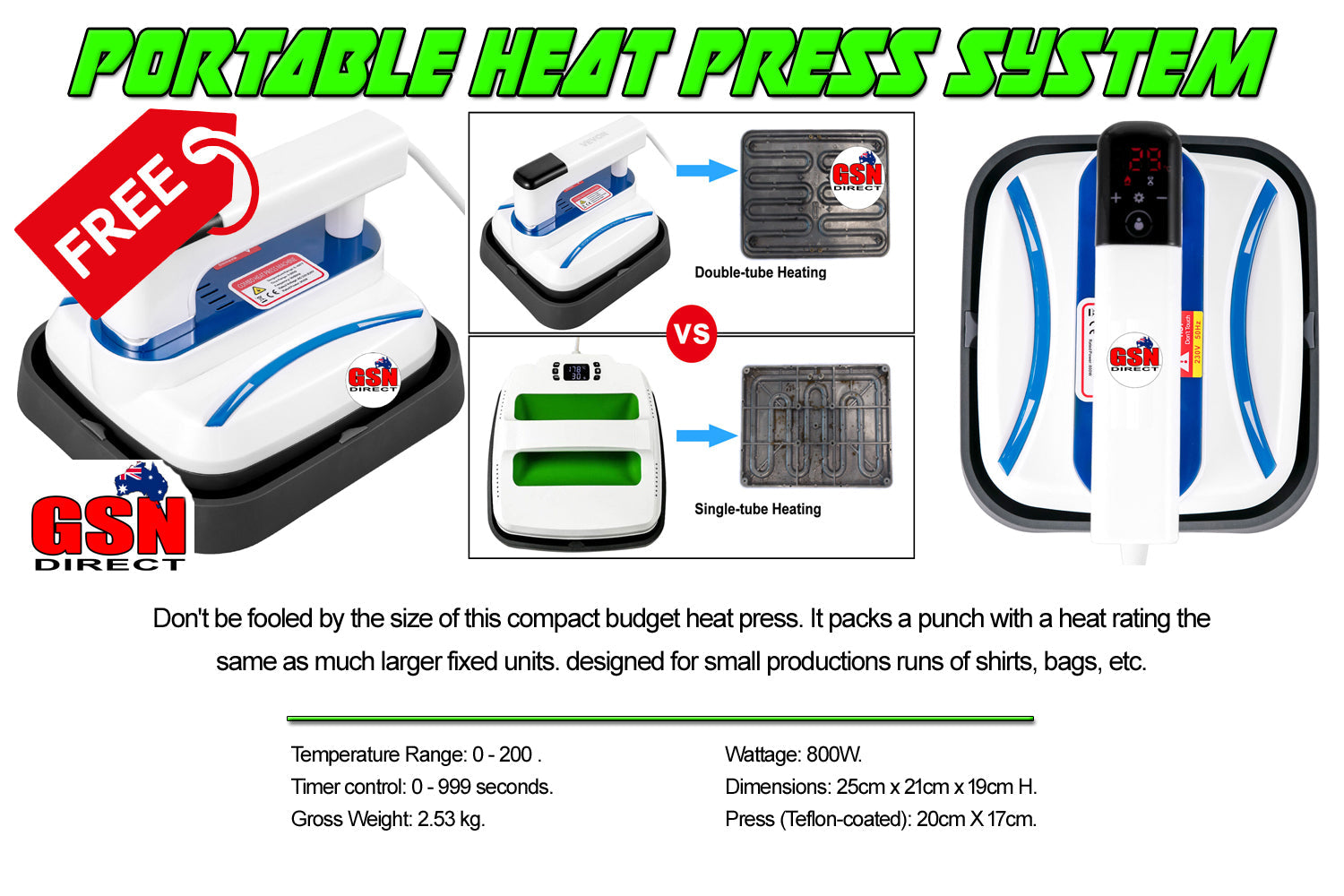 * FREE Portable Heat Press System. Model may vary depending on availability but will be same or better